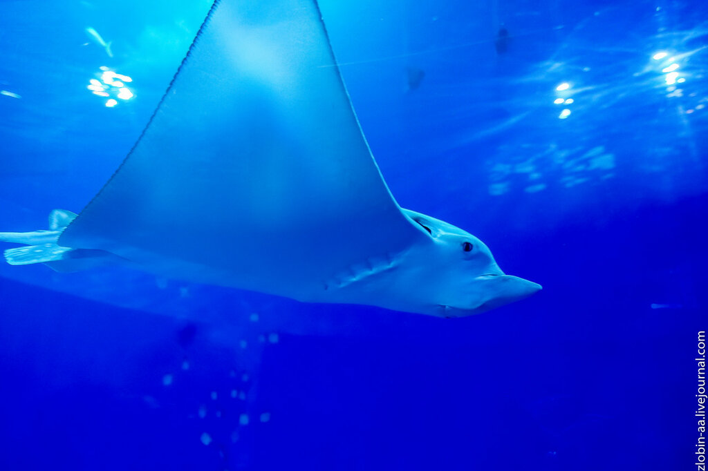 16 - так близко я ската еще не видел. Грустненький какой-то, но очень грациозный. Когда он махал крыльями, я прислушивался, ожидая шум ветра услышать, но из-за стекла ничего не разобрал :-) А потом меня нашли...
