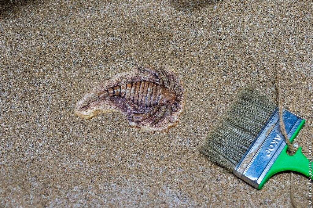 02 - переходя от одной непонятной штуковины к еще более непонятной живности, можно поиграть в Индиану Джонса и специальной кисточкой в не менее специальном ящичке отыскать первобытную креветку - я бы такую есть не стал…