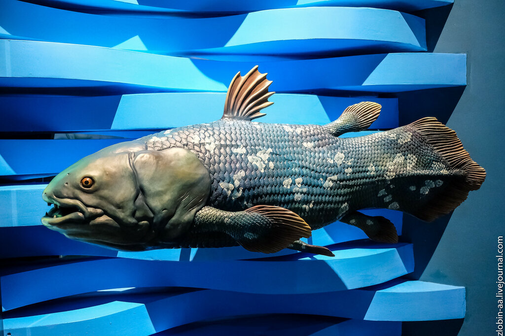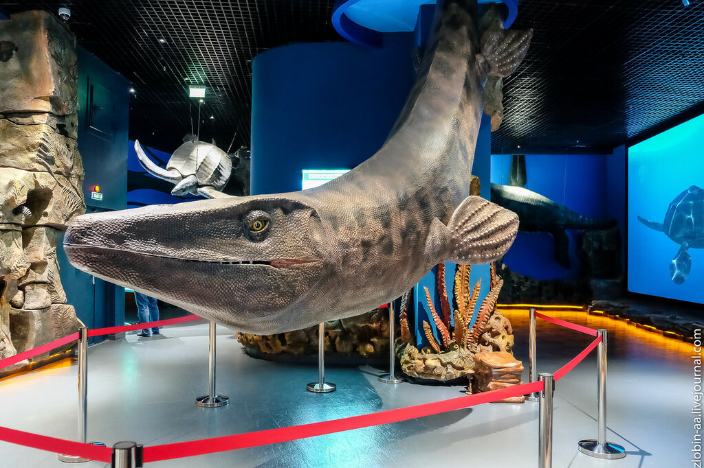 04 - а вот доисторический предок вкусного тунца уже в натуральную величину, как и большинство экспонатов из юрской эпохи. Пра-тунец размером с небольшой моторный катер и чешуйки с ладонь. В общем, с острогой на такого не пойдешь…