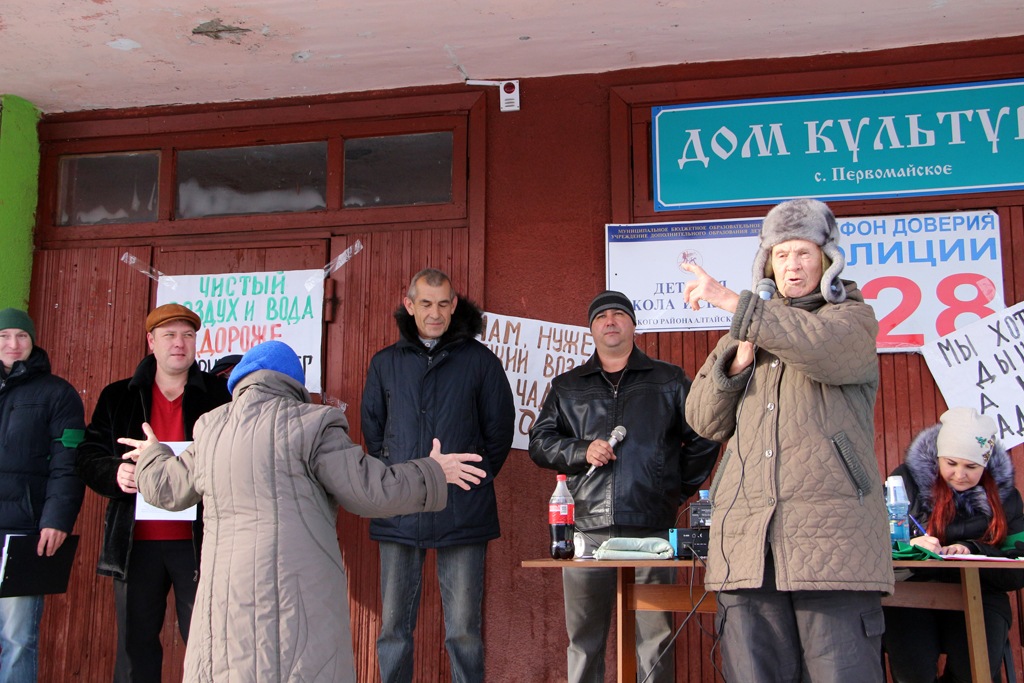 Глава сельсовета начал отвечать общими фразами: мол, «проект еще на стадии согласования», «еще надо пройти по приказу Минприроды РФ экспертизу в Алтайском крае». «То есть никогда!» — прервали Ткачева жители Первомайского.