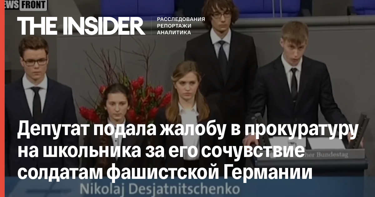 Депутат подала жалобу в прокуратуру на школьника за его сочувствие солдатам фашистской Германии