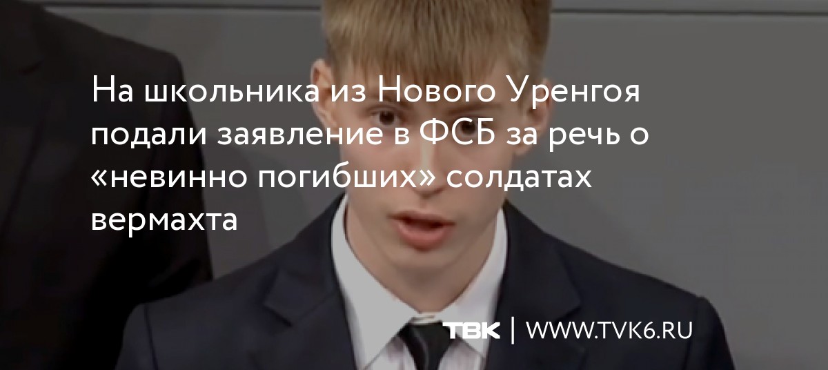 На школьника из Нового Уренгоя подали заявление в ФСБ за речь о «невинно погибших» солдатах вермахта