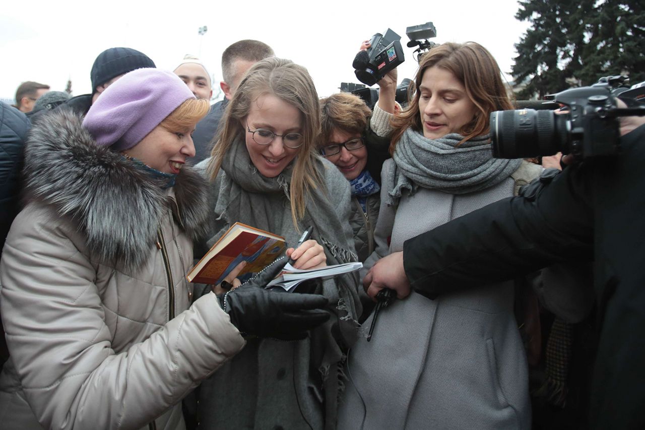 Как рассказывала «Медузе» сама Собчак, на своих первых президентских выборах она голосовала за Путина. На последних — за бизнесмена Михаила Прохорова. Теперь она собралась в президенты сама. На проспекте Сахарова в 2011 году Собчак призывала «влиять на власть, а не бороться за власть»; сейчас ее лозунги во многом похожи. У Собчак нет программы, нет своей политической структуры (она планирует выдвигаться от партии «Гражданская инициатива») и нет намерения победить, а перед выдвижением она встречалась с Путиным и обсуждала с ним свое участие в выборах — после интервью для фильма о ее отце. По утверждению Собчак, организация встречи заняла несколько месяцев, хотя просила она о ней через пресс-секретаря президента Дмитрия Пескова, с которым «хорошо знакома». Песков — ее единственный канал связи с Путиным, если не считать матери: «Я знаю, что у нее [Нарусовой] есть свой канал общения с президентом, но я им никогда в жизни не пользовалась».