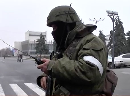 Люди с автоматами заняли здание управления МВД, подогнав ко входу бронетранспортер, сообщил журналист Андрей Дихтяренко в Facebook. По его словам, некоторые из захватчиков вооружены ручными гранатометами.