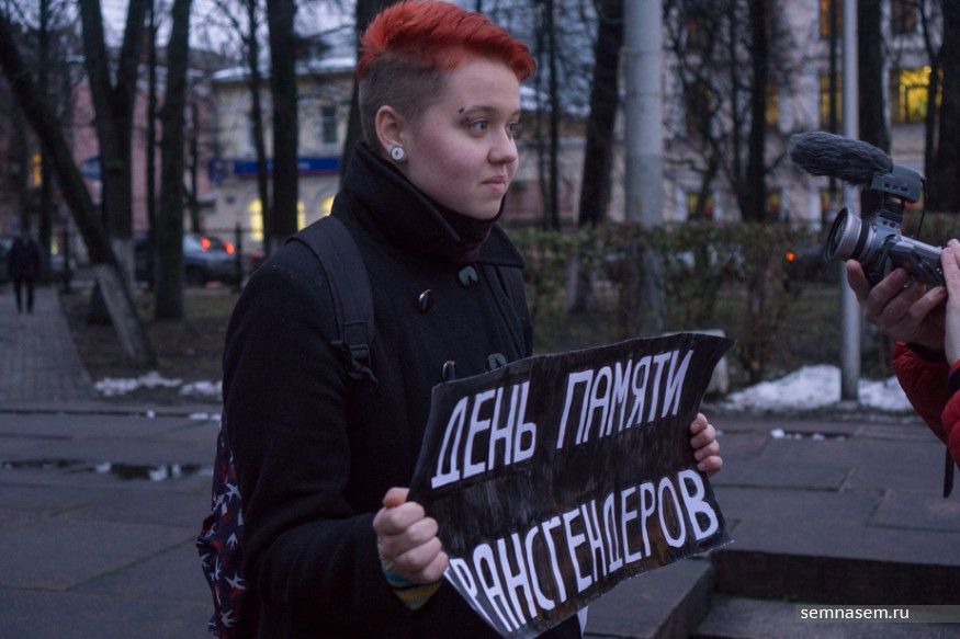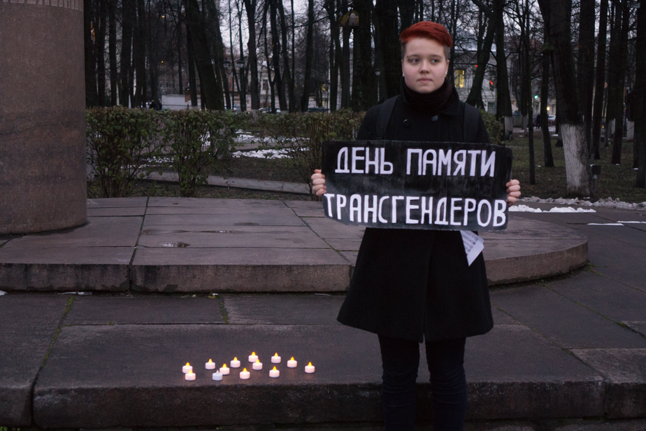 ЛГБТ-активистка Алёна Ерох запланировала траурную акцию памяти убитых на почве ксенофобии людей-трансгендеров. 20 ноября — День памяти трансгендеров, который в 1999 году учредили правозащитники после убийства в США чернокожей женщины-трансгендера Риты Хестер. Ерох назначила акцию у памятника театральному деятелю Фёдору Волкову. По ее мнению, эта площадка ранее считалась местом встречи представителей ЛГБТ-сообщества Ярославля. Активистка попросила полицию защитить акцию от возможных нападений. В 16:00 она встала в одиночный пикет у памятника с плакатом «День памяти трансгендеров» и поставила рядом несколько свечей.