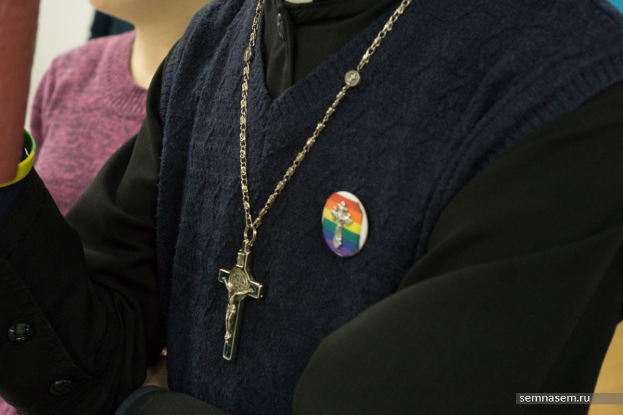 Молодой человек в черной рясе встал в одиночный пикет с надписью «Не убий». Он представился священником Кельтской церкви Германии и рассказал, что приехал из Кемеровской области, чтобы поддержать акцию. Журналисты спросили его об отношении церкви к однополым отношениям, но тот ответил, что в Библии есть запрет на гомосексуальные практики с ритуальным подтекстом, а не на гомосексуальность в целом. На вопрос корреспондента «7x7» о том, что сподвигло его проделать такое большой путь ради одной акции, он ответил одним словом — «Солидарность».