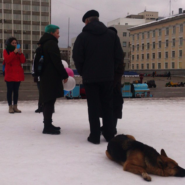 Компания из 6 человек стоит у памятника Ленину, каждый занимается своим делом, ожидая опаздывающих. Я в это время развлекаюсь с шариками, которые из-за ветра бьют меня в лицо. Вдруг бабушка, как бы заглядывая из-за плеча, спрашивает про трансгендеров. Объясняю уже привычное, хотя и немного растерянно. И снова неожиданно из-за спины раздается голос, мол не расслышал. А там стоит мужчина лет 50-60 с тем же вопросом. Объясняю уже двоим.