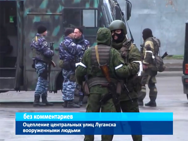 По данным "Новой газеты", глава самопровозглашенной Луганской народной республики Игорь Плотницкий, который утром находился на рабочем месте, приказал им освободить город. Его приказ проигнорировали. Вооруженные люди с белыми повязками на рукавах заблокировали доступ к административным зданиям.
