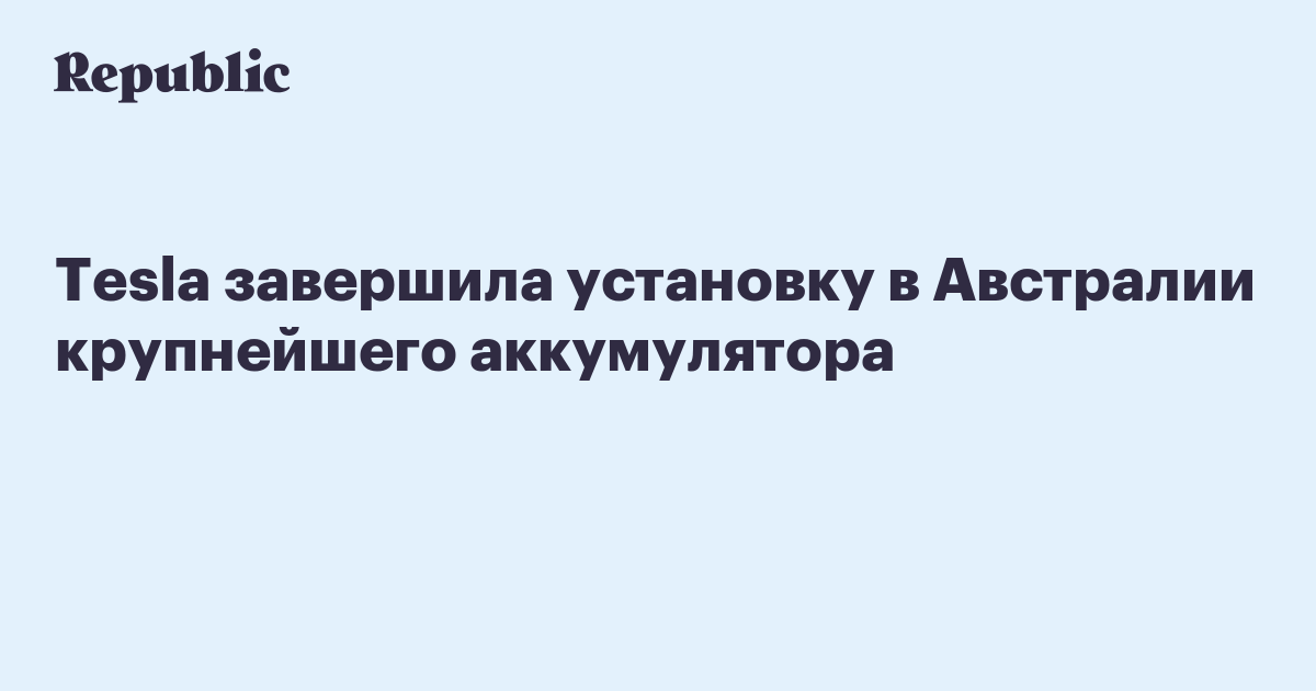 Tesla завершила установку в Австралии крупнейшего в мире литий-ионного аккумулятора. Об этом сообщили власти страны, передает Bloomberg.