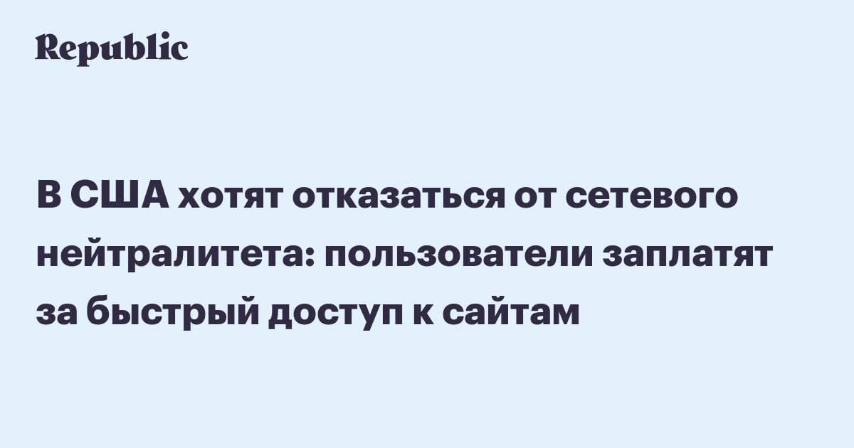 Федеральная комиссия по связи США (FCC) 21 ноября заявила, что хочет разрешить интернет-провайдерам определять, какие сайты просматривают и посещают их пользователи. Это даст операторам право блокировать ресурсы, которые им не нравятся, или ограничивать скорость к ним. Фактически это нововведение убивает принцип сетевого нейтралитета, который законодательно закрепили при администрации Барака Обамы.