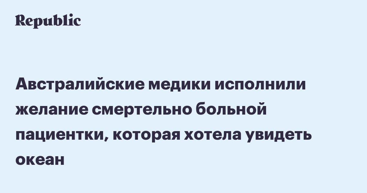 Австралийские медики исполнили желание смертельно больной пациентки, которая хотела увидеть океан