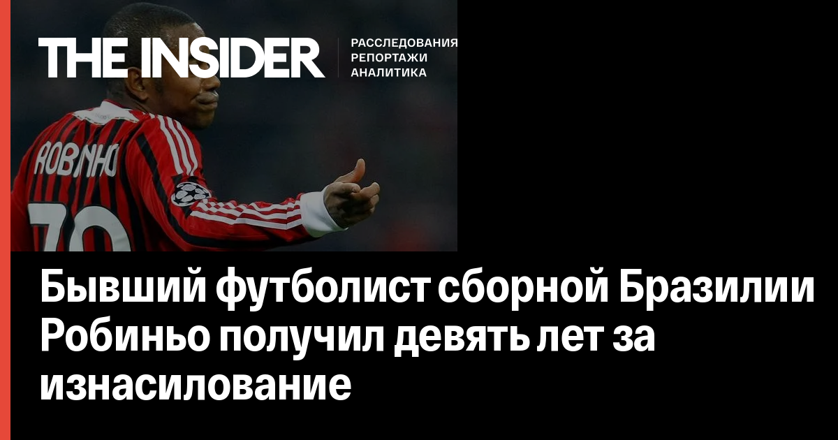 Бывший игрок сборной Бразилии по футболу Робиньо заочно приговорен судом итальянского города Милан к девяти годам лишения свободы за групповое изнасилование, сообщает РИА «Новости» со ссылкой на итальянские СМИ.