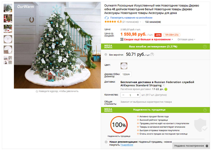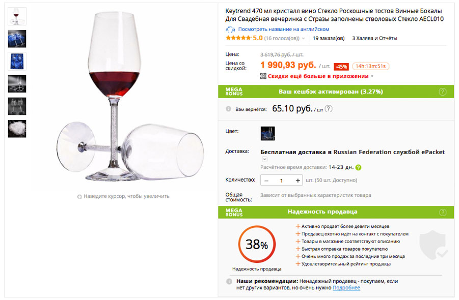 * Если уровень надежности меньше 50 %, сервис не рекомендует покупать товар.