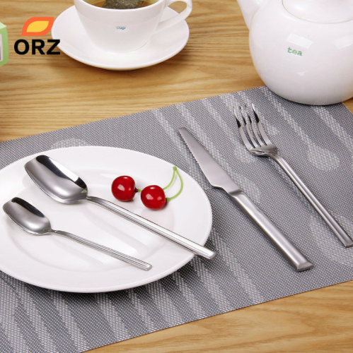 В одном комплекте столовых приборов — вилка, нож, столовая и десертная ложка из нержавеющей стали.