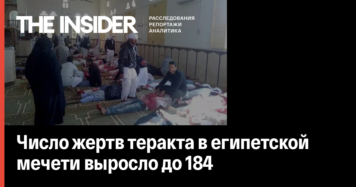 В результате атаки на мечеть на севере Синайского полуострова, по последним данным, погибли 184 человека, сообщает Би-би-си. Ранения получили более 120 человек.