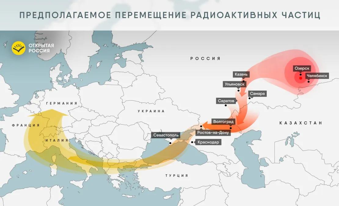 Столь стремительное распространение загрязненного облака с Южного Урала Росгидромет объясняет метеорологической обстановкой (смычкой двух антициклонов), «благодаря которой возникли условия для активного восточного переноса воздушных масс и загрязняющих веществ с территории Южного Урала и Южной Сибири в район Средиземноморья и затем на север Европы».