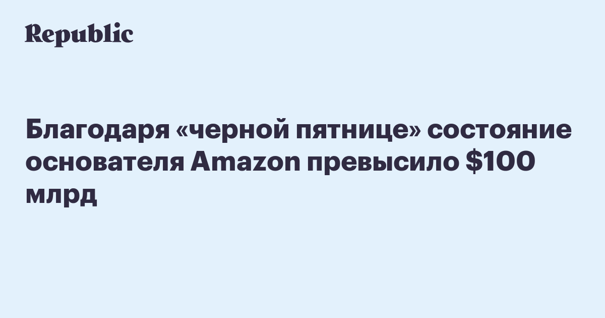 За один день состояние Безоса увеличилось на $2,4 млрд и достигло $100,3 млрд после того, как акции Amazon в день начала распродаж после Дня благодарения подорожали более чем на 2%. Продажи интернет-магазина, по данным Adobe Analytics, в течение «черной пятницы» выросли более чем на 18% по сравнению с прошлогодними показателями.