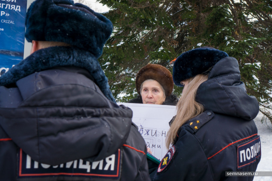 Дольше всех стояла с плакатом самая пожилая активистка Татьяна Савельева. У нее проверяли документы несколько полицейских. Полиция интересовалась, кто организовал такую акцию. 70-летняя обманутая дольщица пожаловалась на то, что вызвала такой интерес у полиции впервые в жизни.