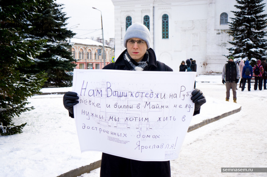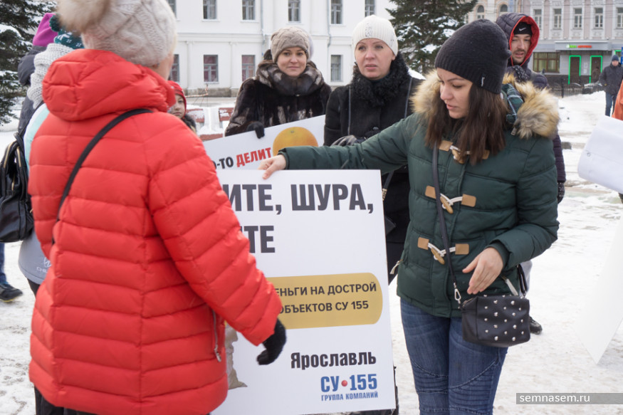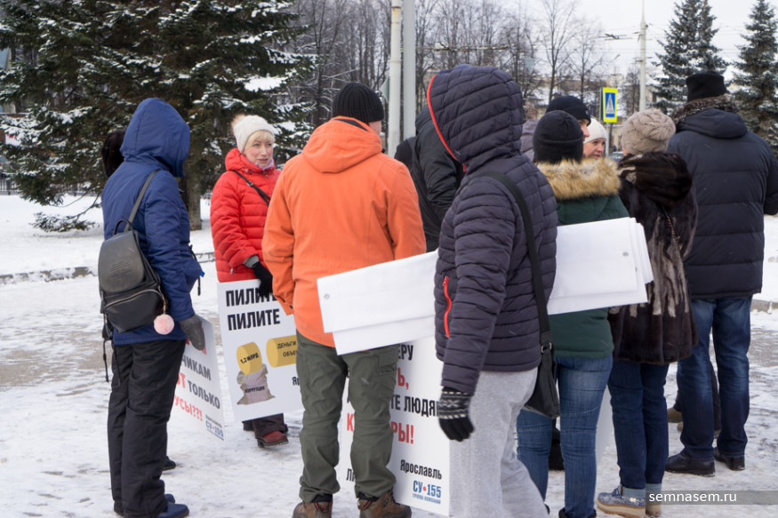 Около 20 человек из числа обманутых дольщиков собрались в 11:00 у Знаменской башни в Ярославле. С собой они принесли плакаты, договорились встать поодаль друг от друга, обменялись телефонами. Они разделились на несколько групп и встали в одиночных пикетах на площади Волкова, Богоявленской, Красной и на улице Свободы.