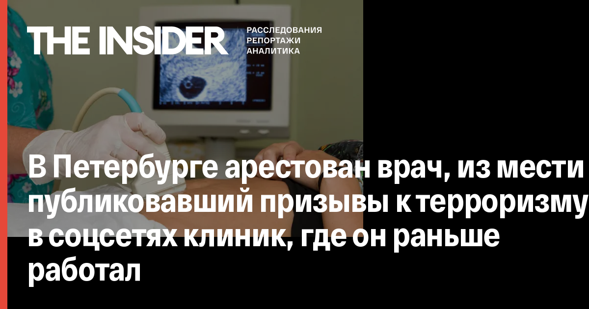В Петербурге арестован врач, из мести публиковавший призывы к терроризму в соцсетях клиник, где он раньше работал