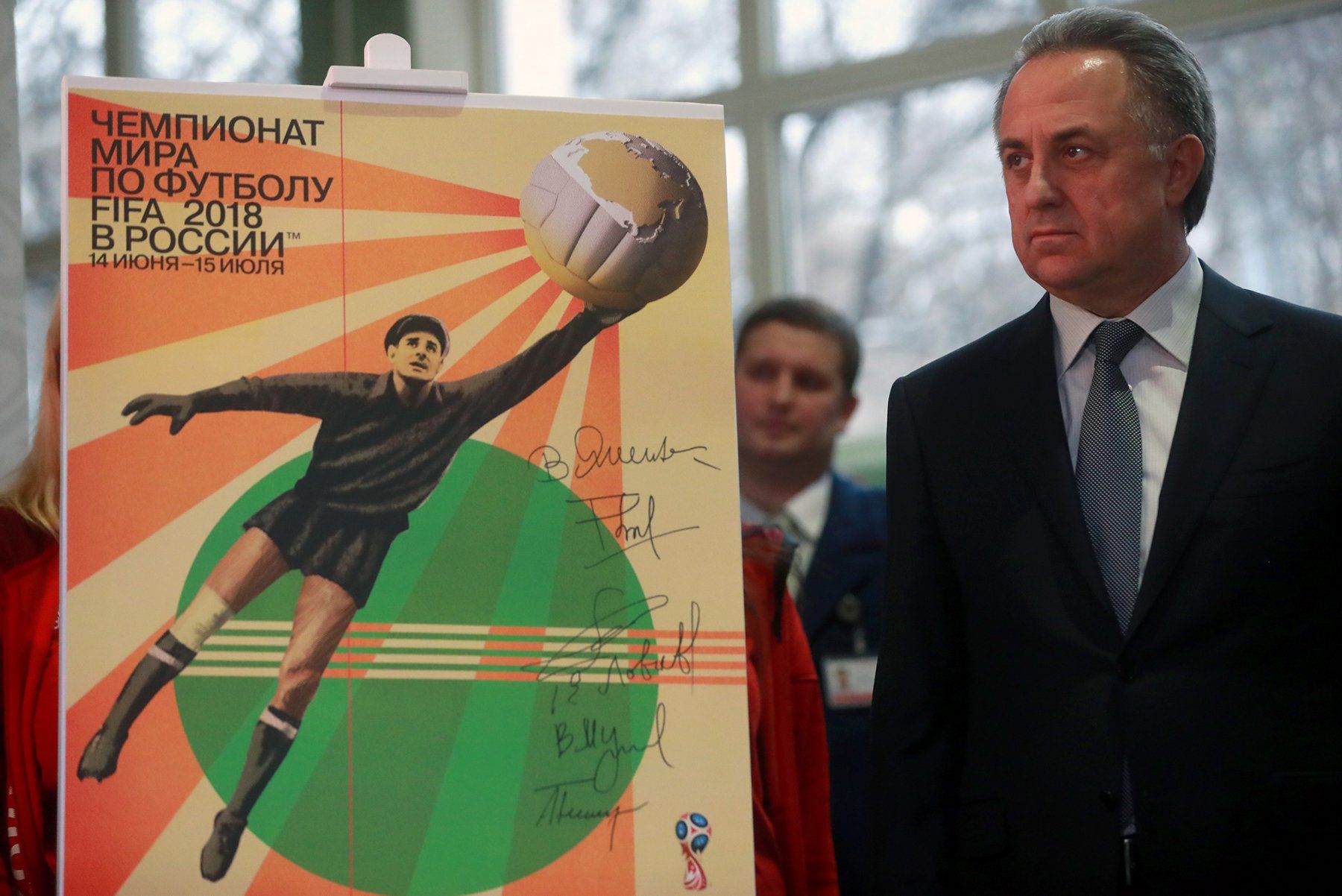 Виталий Мутко показал официальный плакат к чемпионату мира по футболу в России. На нем Лев Яшин пытается поймать спутник.