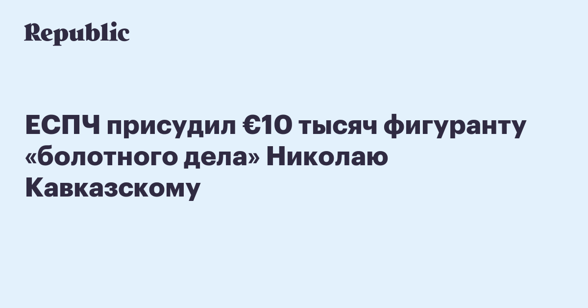Европейский суд по правам человека (ЕСПЧ) присудил €10 тысяч фигуранту «болотного дела» Николаю Кавказскому за нарушения во время его задержания и суда. Об этом сообщается на сайте суда.