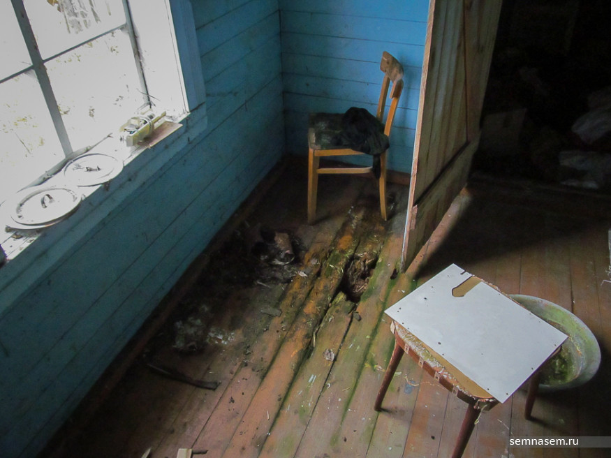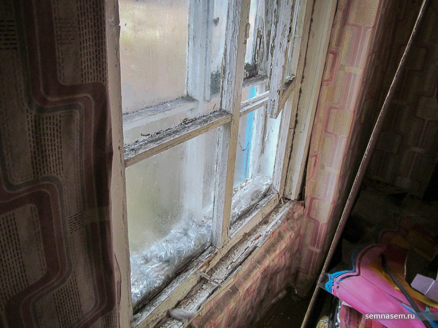 Сейчас женщина живет одна в опустевшем бараке. Взрослые дети переехали в город, а соседи — кто съехал, кто умер, а кто попал в места не столь отдаленные. В результате квартиры по соседству пустуют, не отапливаются и разрушаются. Настолько, что в одной из них рухнул потолок — по этой причине женщина и проснулась тогда от грохота. И сегодня есть серьезная угроза того, что прогнившая над пустующими квартирами крыша обрушится и потянет за собой кровлю над квартирой, в которой живет Галина Рязиева. Две комнаты ей пришлось закрыть: печи, смежные с соседскими, топить там уже невозможно. От холода и сырости обои на стенах вздулись, рамы просели и начали гнить.