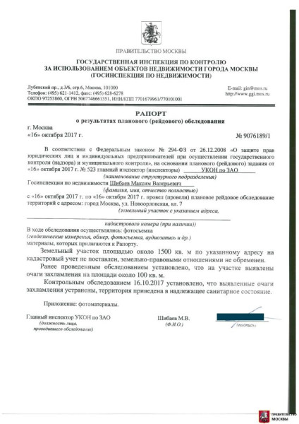 Пришёл ответ, что всё хорошо, захламление территории устранено, прилагается фотофиксация.