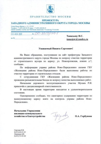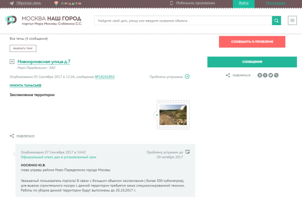 Каждый раз, когда я опровергал ответы Управы (исполнитель "Жилищник") на портале "Наш город", "Жилищник" просто продолжал засыпать грунтом строительный мусор, сообщая и прикладывая фотографии о якобы вывезенном мусоре.