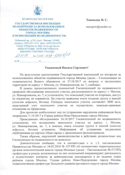 Теперь вернёмся к Инспектору Шибаеву. Я написал на него жалобу в Госинспекцию по недвижимости.