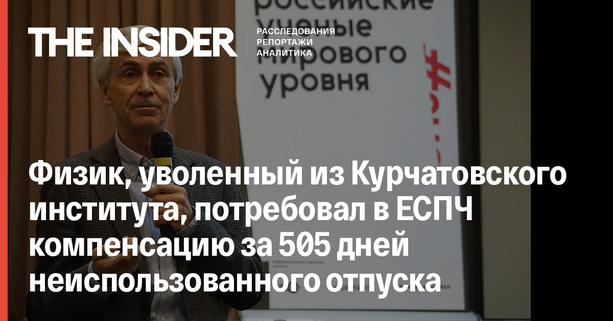 Физик, уволенный из Курчатовского института, потребовал в ЕСПЧ компенсацию за 505 дней неиспользованного отпуска