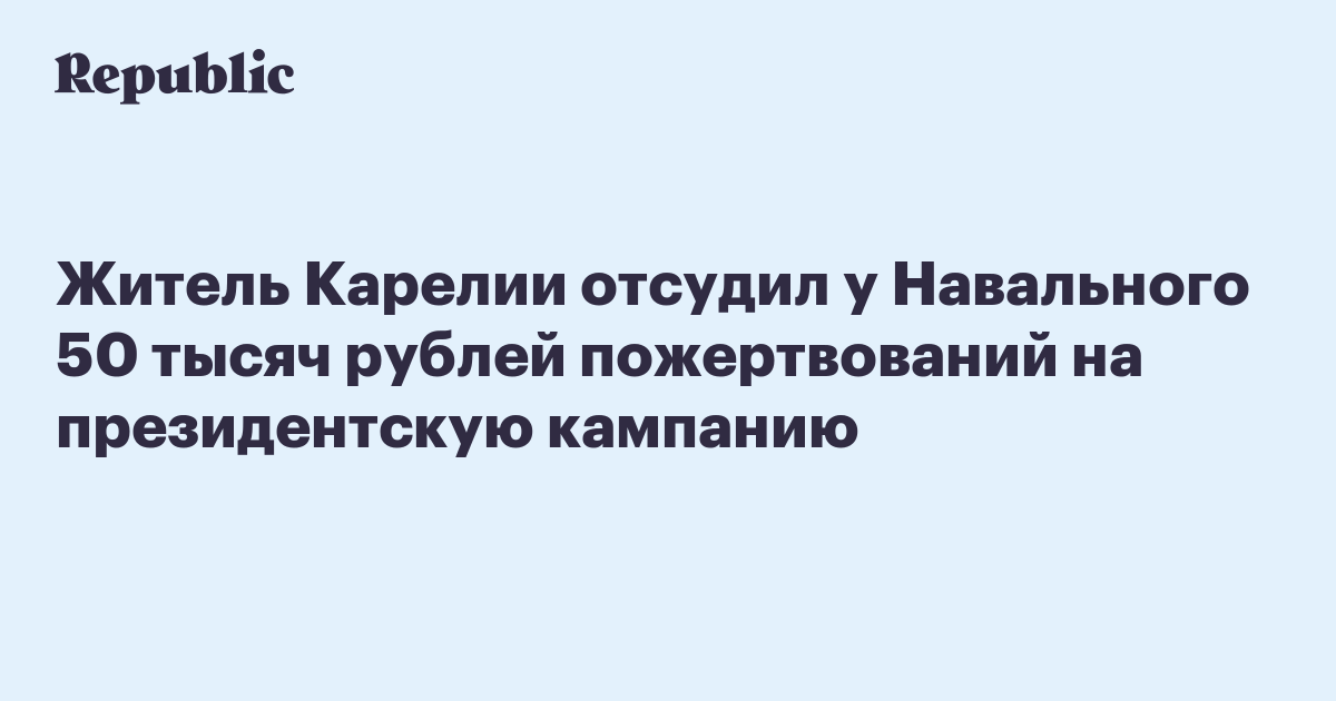 Житель Карелии отсудил у Навального 50 тысяч рублей пожертвований на президентскую кампанию