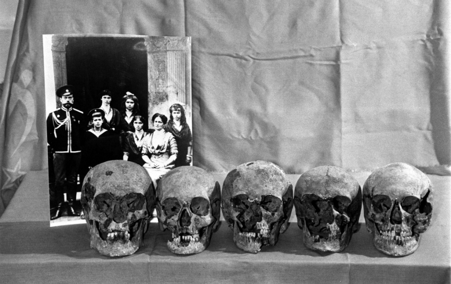 1993 г. По мнению екатеринбургских экспертов — это черепа членов царской семьиФото: Анатолий Семехин/ТАСС Российский генетик Евгений Рогаев независимо от этой экспертизы исследовал образцы крови родного племянника Николая II, сына его сестры Ольги Александровны — Тихона Николаевича Куликовского-Романова. И сравнительный анализ показал полное совпадение последовательностей митохондриальных ДНК с костной тканью скелета № 4 из захоронения в Поросенковом логе. Скелет № 4 предположительно принадлежал Николаю II. Эксгумировали останки брата императора Николая II — великого князя Георгия Александровича, и ДНК также совпали, включая редкую мутацию.