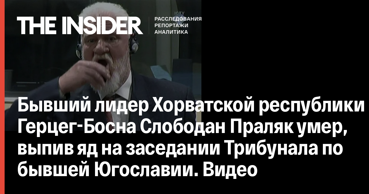 Бывший лидер Хорватской республики Герцег-Босна Слободан Праляк умер, выпив яд на заседании Трибунала по бывшей Югославии. Видео