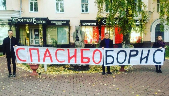 Жулимова рассказала агентству, что в день рождения Немцова 9 октября несколько человек сфотографировались с транспарантом с надписью «Спасибо, Борис!». Фотографию опубликовали в соцсетях.