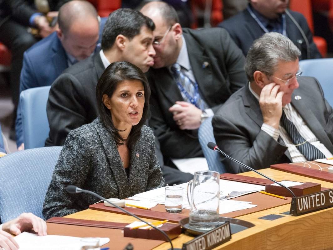 Хейли заявила: «Мы призываем все страны прервать все связи с КНДР в дополнение к имплементации всех санкций ООН». Американский постпред также призвала страны мира выслать рабочих КНДР, прекратить товарообмен с этим государством и лишить Северную Корею права голоса в ООН.