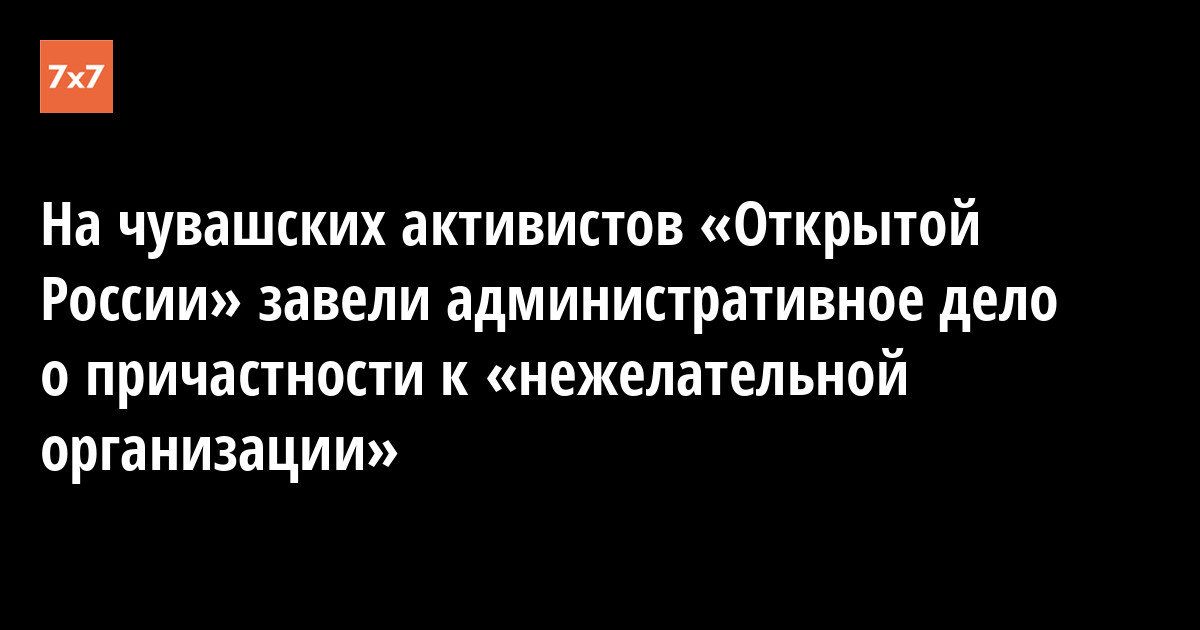 На координатора движения «Открытая Россия» (OP) в Чувашии Дмитрия Семёнова и активиста Юрия Сидорова завели административное дело о причастности к «нежелательной» в России британской организации Open Russia. Об этом корреспонденту «7x7» 30 ноября сообщил сам Семёнов.