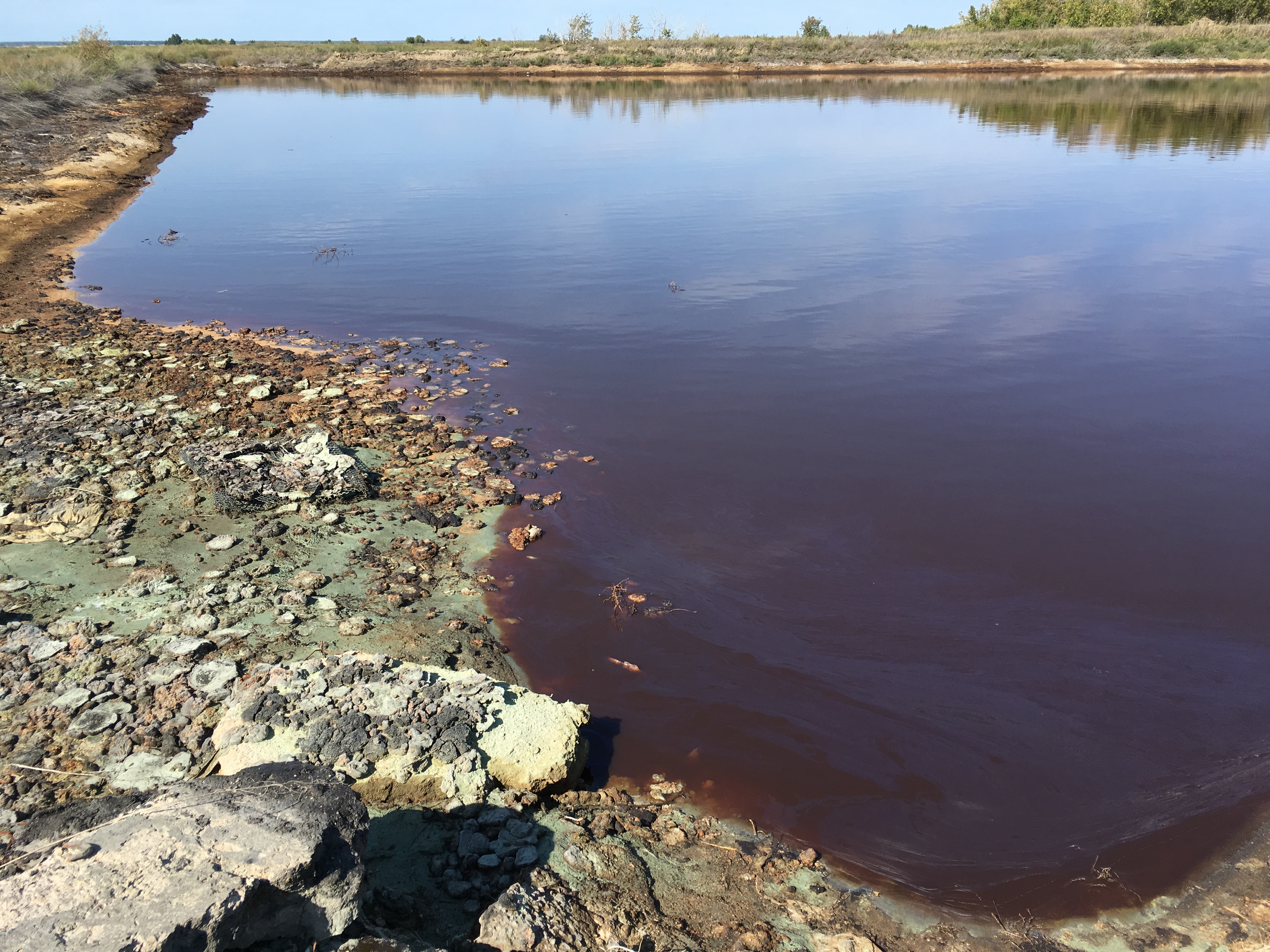 В середине августа Орис Брут вместе Сергеем Костаревым провел рейд по задворкам предприятий северного промузла Омска. На территории завода "Омский каучук" они обратили внимание на буферные пруды предприятия – так называемые "резиновые озера".