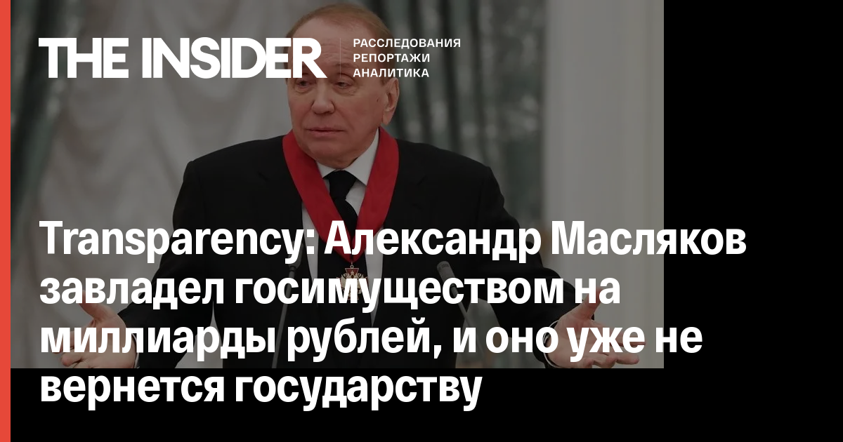 Transparency: Александр Масляков завладел госимуществом на миллиарды рублей, и оно уже не вернется государству