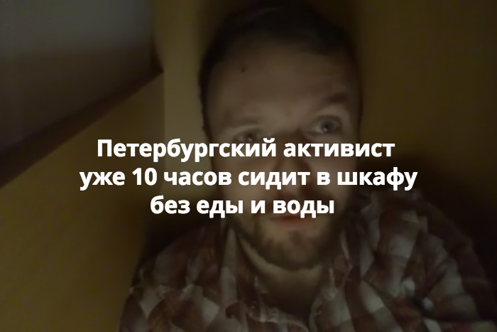 В Петербурге активист Борис Конаков проводит перформанс «Шкаф» в честь Всемирного дня борьбы со СПИДом. Он пообещал сидеть в шкафу 30 часов без еды и воды. Параллельно Конаков ведет трансляцию в фейсбуке. Первая запись прямого эфира из шкафа опубликована 10 часов назад.