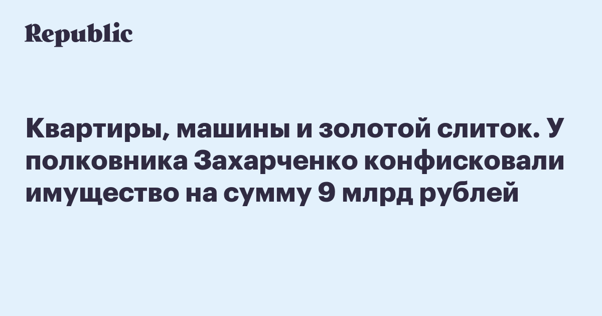 Квартиры, машины и золотой слиток. У полковника Захарченко конфисковали имущество на сумму 9 млрд рублей