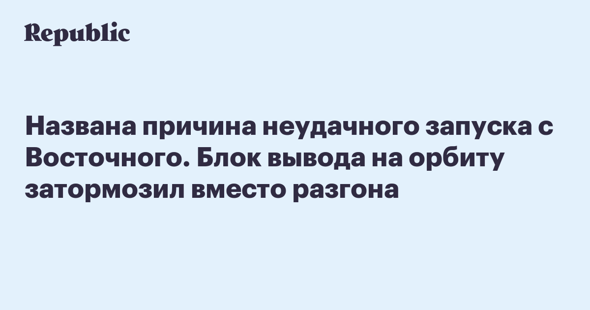 Названа причина неудачного запуска с Восточного. Блок вывода на орбиту затормозил вместо разгона