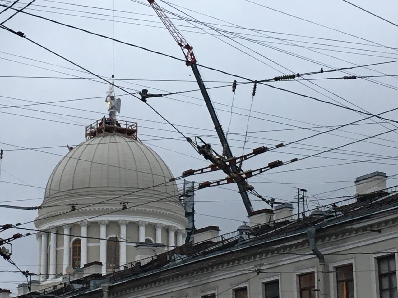 Ангела «Пустые руки» вернули на купол церкви на Кадетской линии