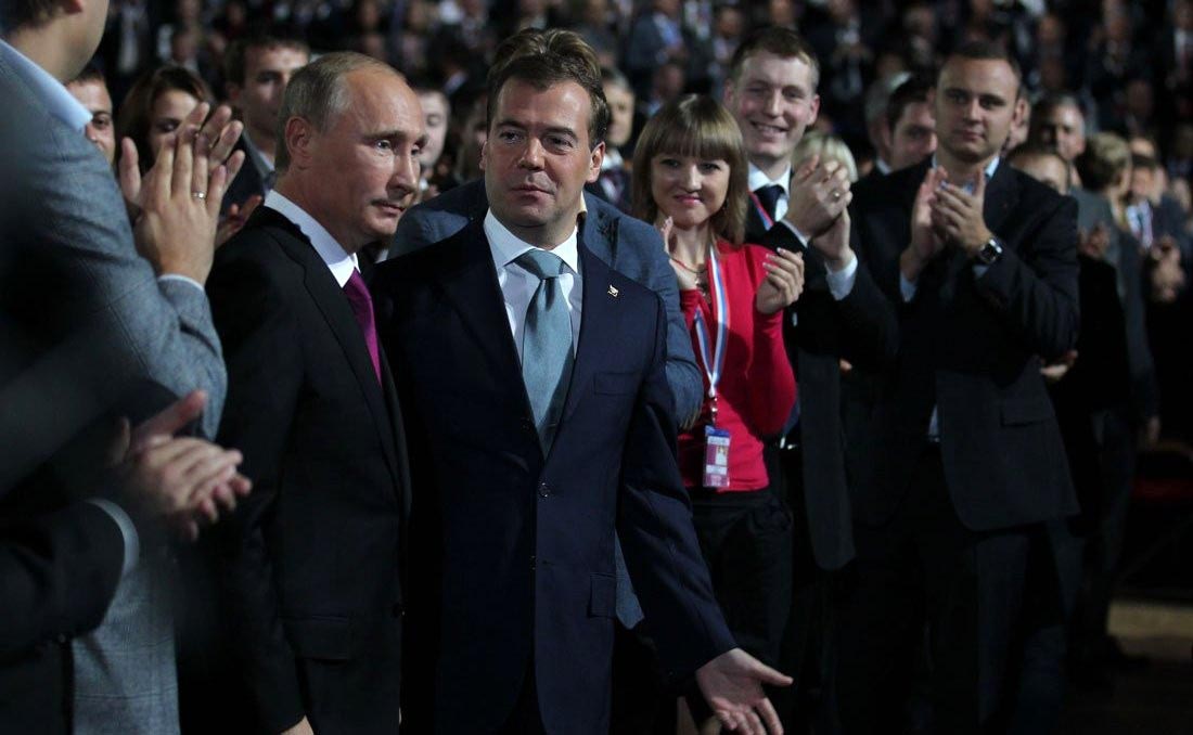 На съезде «Единой России» Дмитрий Медведев предложил выдвинуть Путина в президенты, а сам согласился стать премьер-министром Фото: kremlin.ru