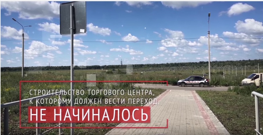 Кадр из видеоролика "Туристические кластеры становятся торговыми" Счетная палата РФ Даже если абстрагироваться от того, что надземные переходы, в принципе в большинстве случаев неэффективны или даже вредны, случай в Ельце действительно выглядит странно. Даже на сайте Управления капитального строительства Липецкой области несчастный надземный переход сфотографирован так, будто стоит в чистом поле. У Life оказалась фотография из презентации Счетной палаты, там все выглядит еще печальней: вокруг даже нет строений. Сложно себе представить человека, который подойдет к небольшой дороге и решит переходить ее по надземному переходу, а не более привычным и простым способом.
