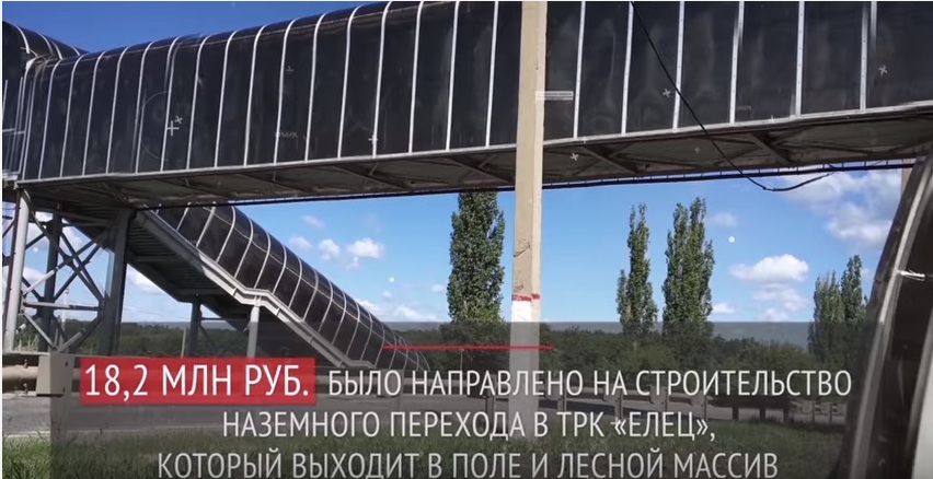 Но интересней всего в диалоге Голиковой и Путина, безусловно, был не рассказ об общих потерях, а конкретный пример. Глава Счетной палаты даже показала президенту фотографии. Оказалось, что создании туристско-рекреационной зоны «Елец» в Липецкой области «в никуда построили надземный переход». В этом случае деньги не украли, а неэффективно использовали.