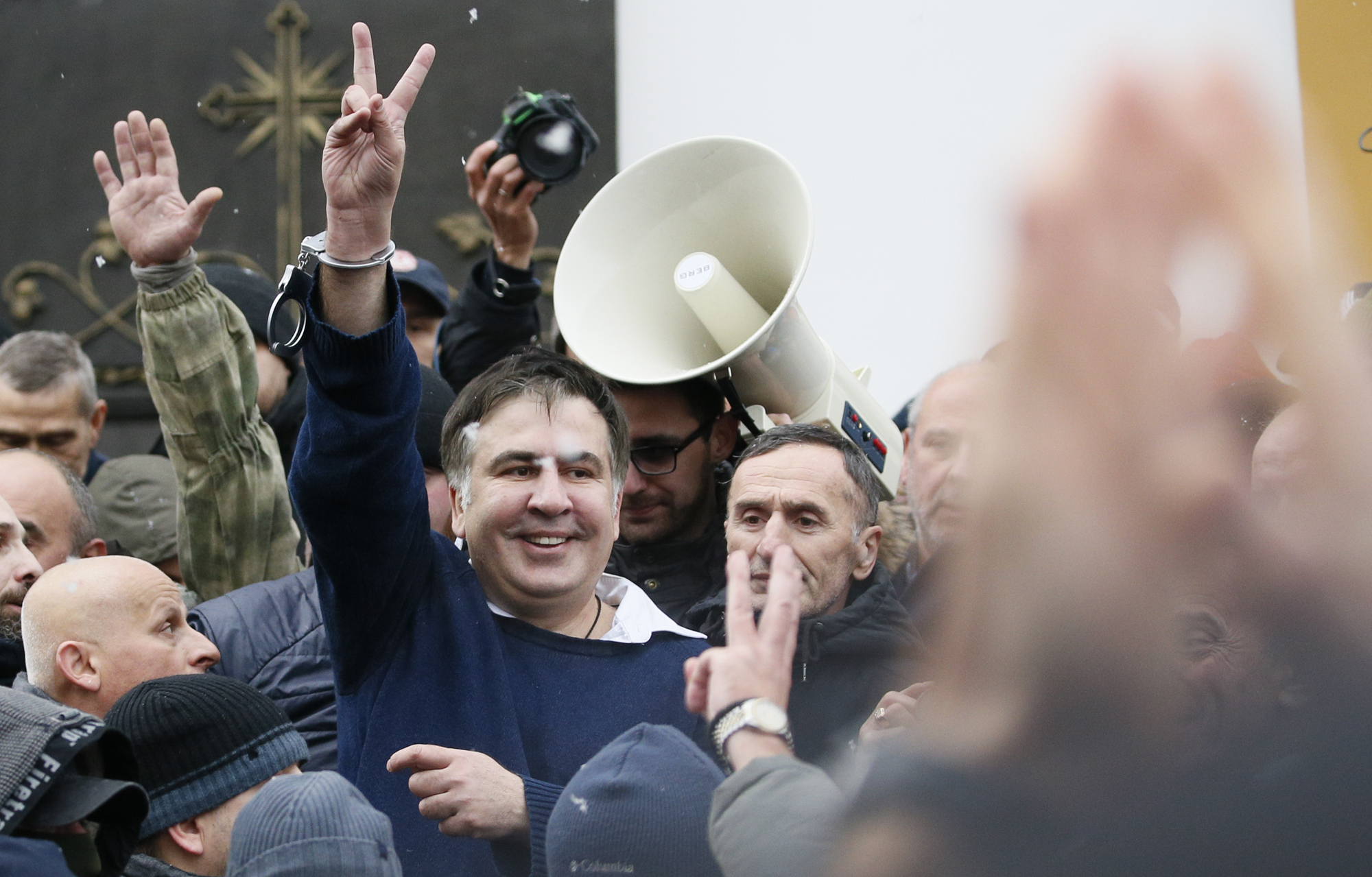 На Украине бывший президент Грузии Михаил Саакашвили возглавляет оппозиционное движение "Рух новых сил". Летом 2017 года политика лишили украинского гражданства. 5 декабря Саакашвили задержали по обвинению в попытке государственного переворота и получении полумиллиона долларов на акции протеста на Украине от близкого к Виктору Януковичу олигарха Сергея Курченко, бежавшего после Евромайдана в Россию.