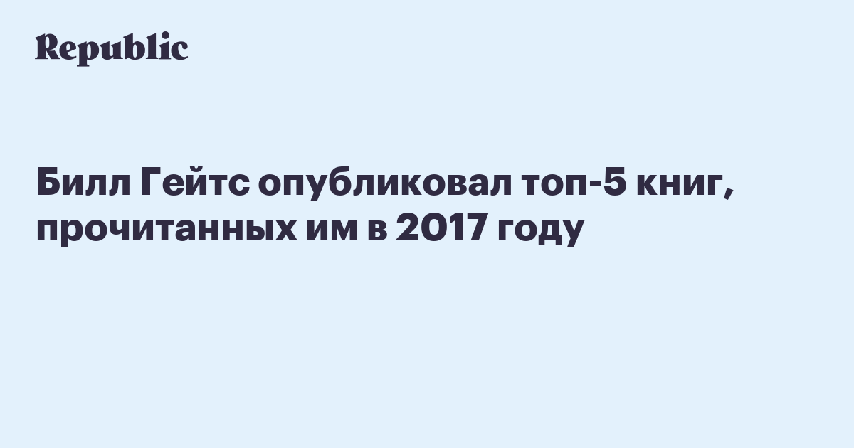 Билл Гейтс опубликовал топ-5 книг, прочитанных им в 2017 году