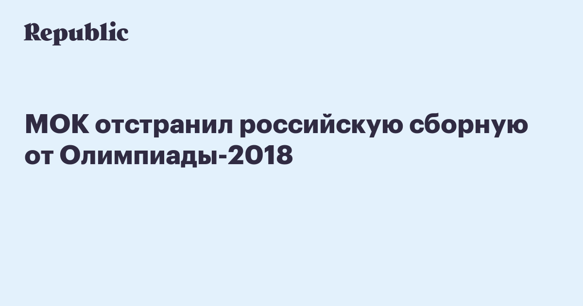 Международный олимпийский комитет (МОК) отстранил сборную России от зимней Олимпиады, которая в феврале 2018 года пройдет в Южной Корее. Об этом сообщается на официальном сайте МОК. Спортсмены смогут участвовать в соревнованиях только под нейтральным флагом.