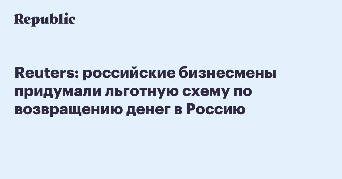 Reuters: российские бизнесмены придумали льготную схему по возвращению денег в Россию
